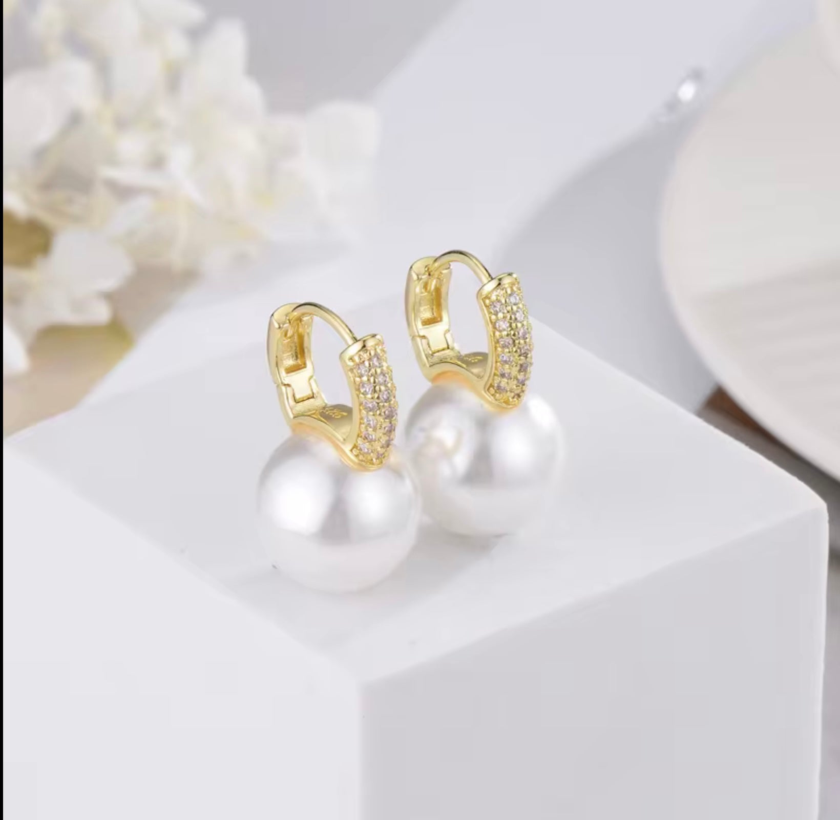 Elegant and timeless, these 925 sterling silver hoops feature luminous pearls and sparkling CZ accents. Lightweight, hypoallergenic, and perfect for gifting or elevating any look with subtle shine.