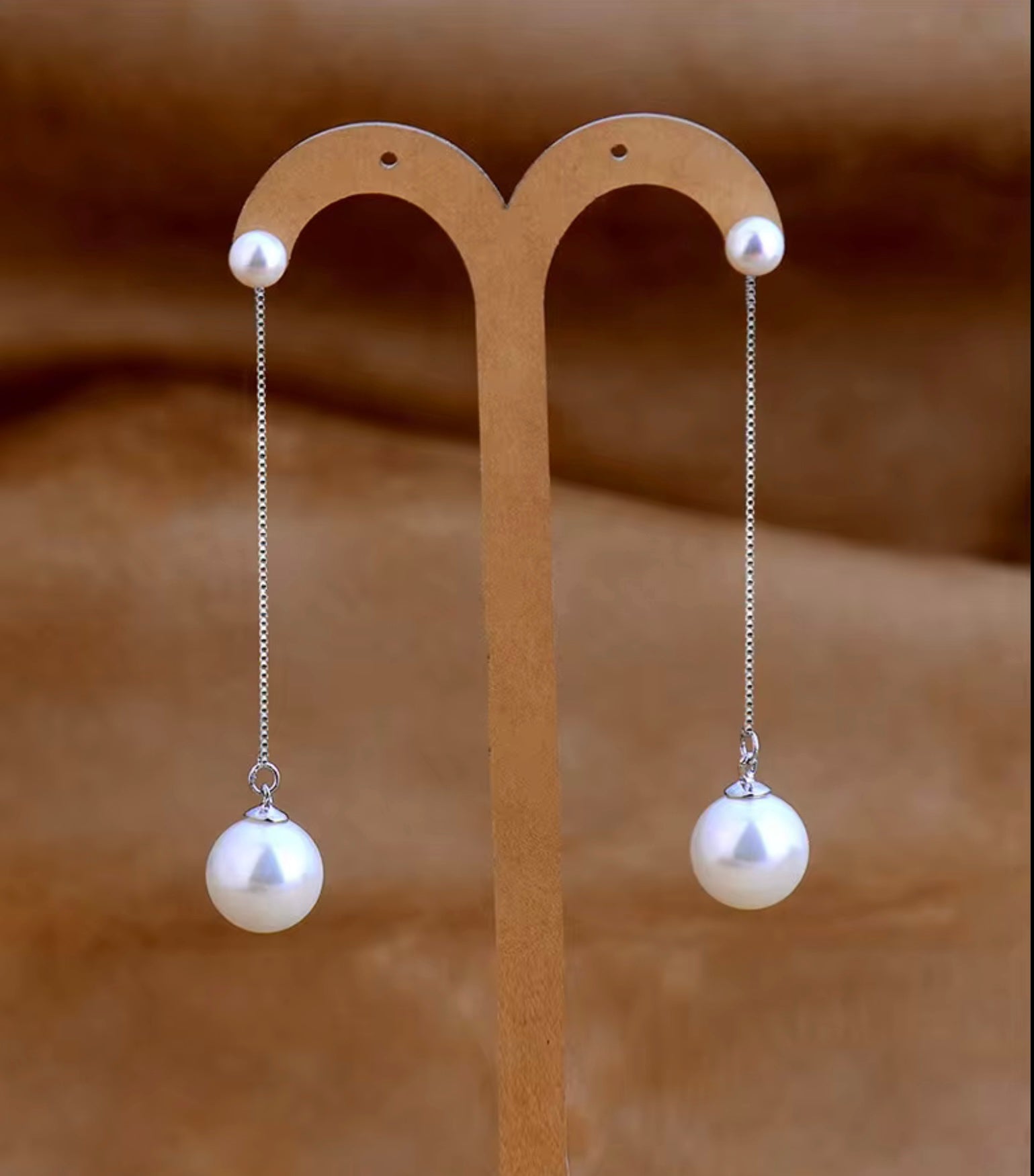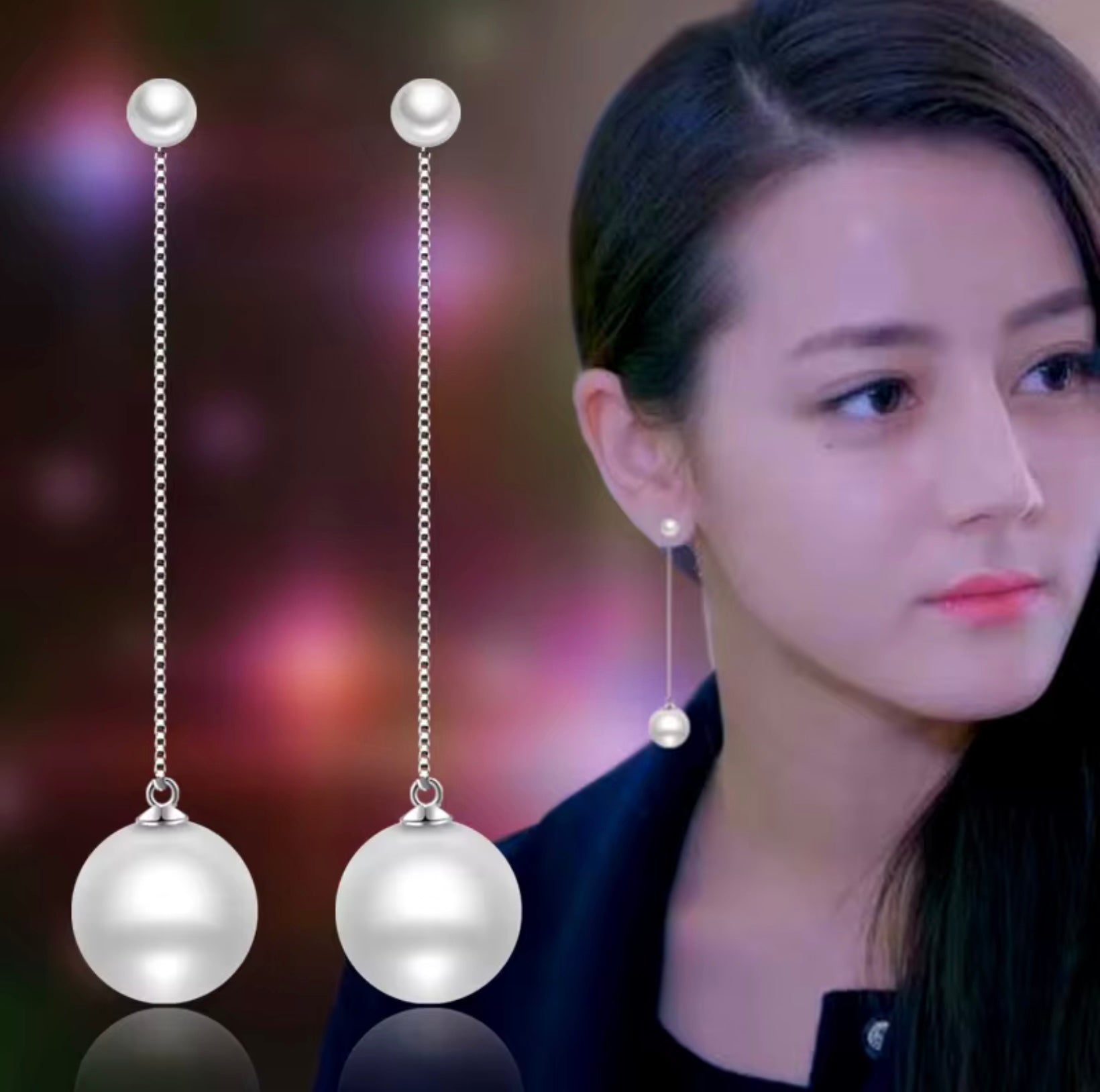 Elegant and eye-catching, these long silver earrings feature dangling pearls in a sleek, minimalist Korean-inspired design. Lightweight and stylish — perfect for statement looks or everyday glam.