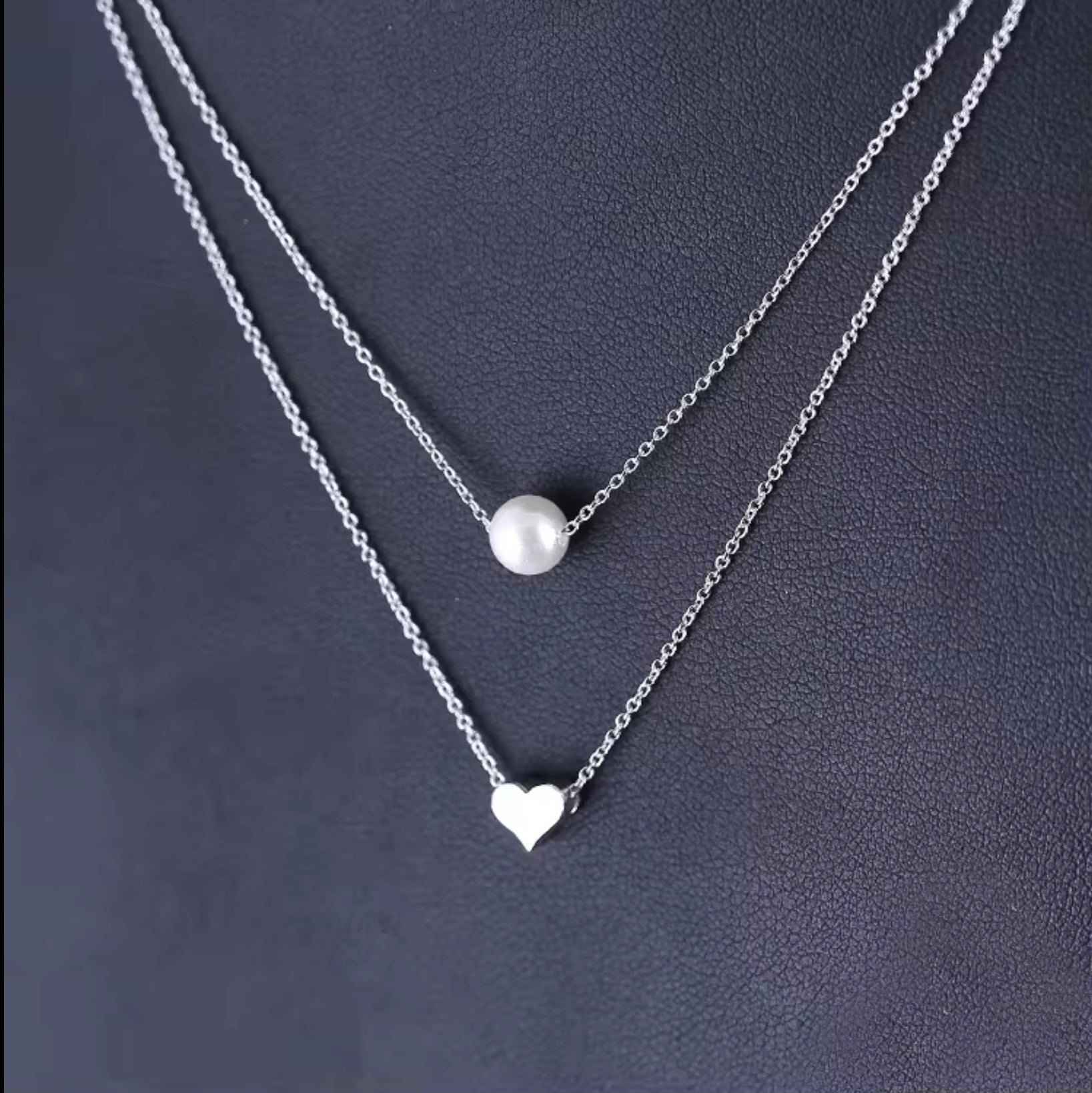 Delicate and romantic, this S925 sterling silver necklace features a double-layer design with a dainty pearl strand and a charming heart pendant. The soft luster of the pearl paired with the polished silver heart creates a look that’s both elegant and feminine.